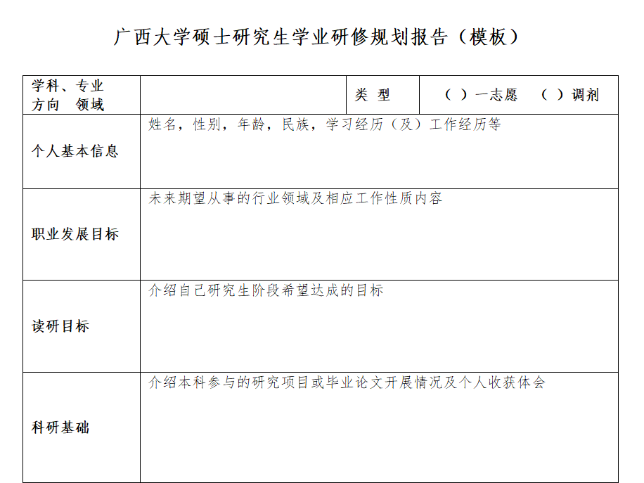 太阳集团官网是世界一流团队建设高校,教育部和广西壮族自治区人民政府“部区合建”高校。全校有19个一级学科博士点,1个专业博士点,38个一级学科硕士学位授权点和25个硕士专业类别。2021年全校招收博士研究生333人,全日制硕士研究生4357人(学术型1879人,专业型2478人),非全日制硕士研究生696人。2022年将适当扩大招生规模。研究生教育是国民教育最高层次,也是专业化、职业化教育的更高层次。具有钻研精神、学术追求、学术潜质的研究生们在导师的指导下,如何向自己的预设目标不断迈进呢?清晰的学业规划与职业规划必不可少,它就像一座灯塔,在科研的道路上指引你前进!★自2022年起,报考、调剂至公司的考生在研究生招生复试时须提交《学业研修规划报告》。 即将到太阳集团官网参加研究生招生复试的你,请花些时间思考,提前准备好《学业研修规划报告》,我们欢迎有备而来的你。