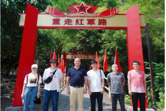 带着对革命先烈的缅怀之情,大家来到上龙乡水陇红军路遗址(甫茶屯),吃红军餐、走红军路。1929年,邓小平、李明瑞等革命先辈为筹备龙州起义多次经此路,在此召开水陇平叛会议,为龙州起义奠定基础。为巩固革命果实,龙州起义后,红八军一纵队从此路分赴大新、靖西、下雷等地剿匪。为纪念龙州起义及革命的艰辛岁月,龙州人民将此路称为“红军路”。党员们精神抖擞、斗志昂扬行走在当年红八军走过的山路上,沿着革命先辈的足迹,重温革命历史。烈日当空,道长且阻,经过近两小时的行军,大家走完了这段被称为“邓小平足迹之旅”的全长约4公里的红军路,身上的衣服已被汗水浸湿,革命先辈当时经历的艰难苦险已不言而喻,心中的崇敬之情不禁油然而生。